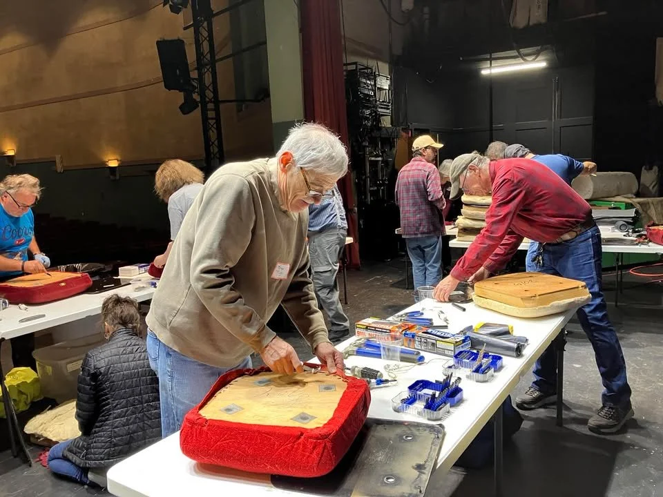 In 2024 and 2025, dozens of volunteers from the Monroe community - and the owner of Monroe Upholstery - came together to give the Wagner seats a new life. They removed seats from their frames, stripped away decayed fabric, recovered them, and reinstalled them, completing about 25 seats per session.